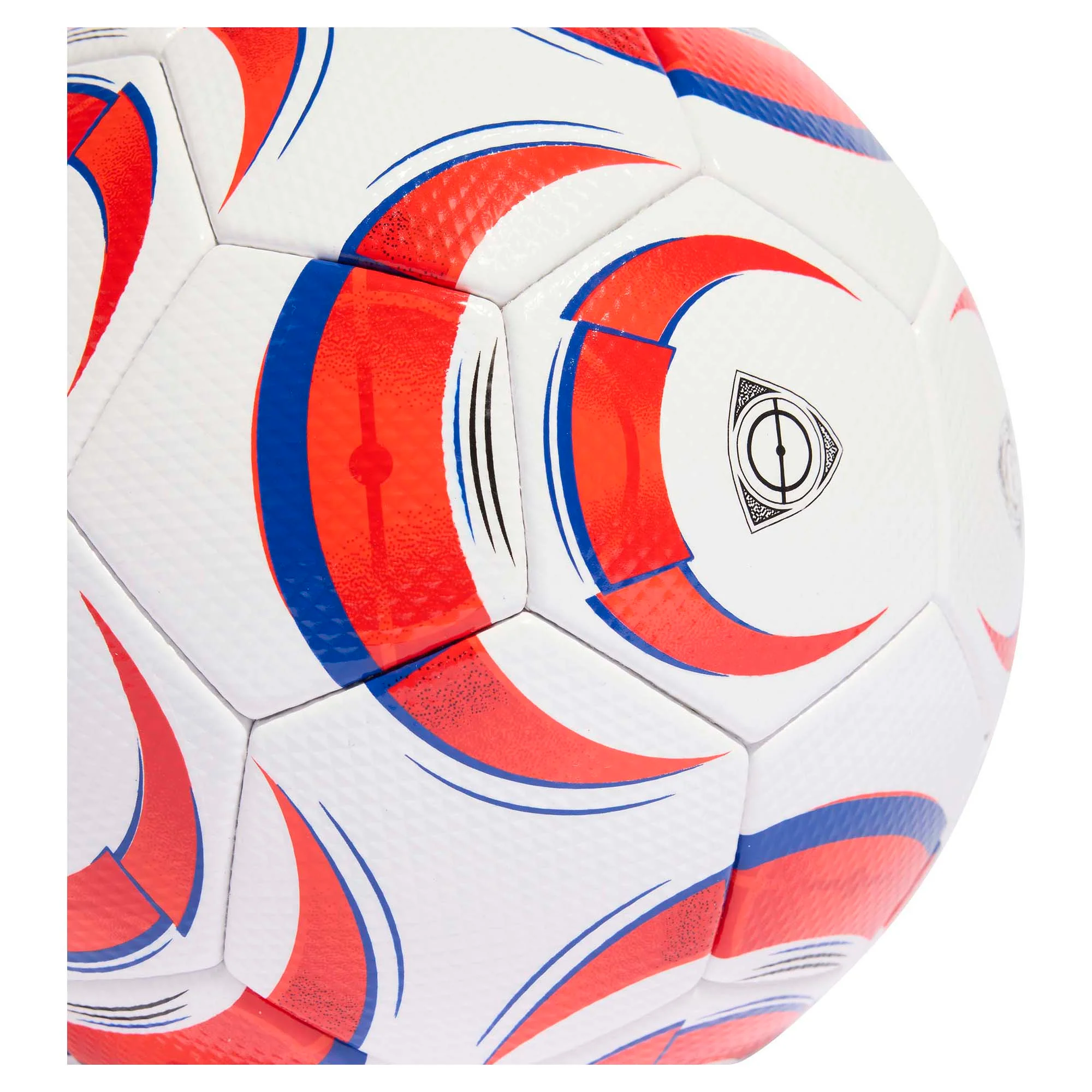 Текстурированная поверхность обеспечивает стабильность и точность полета, помогая пасам и ударам оставаться точными. Бесшовное покрытие, выполненное методом термосклеивания, обеспечивает более предсказуемую траекторию, лучшее касание и меньшее водопоглощение, что делает его идеальным выбором для футбольного поля.